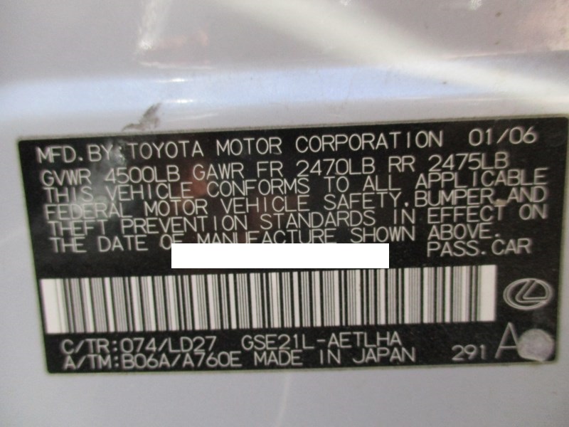 2006 LEXUS IS350 PEARL WHITE 3.5L AT Z162602006 LEXUS IS350 PEARL WHITE 3.5L AT Z16260
