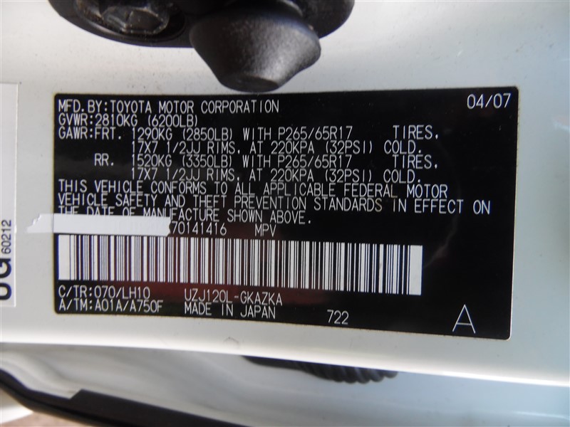 2007 Lexus GX470 White 4.7L AT 4WD #Z21652